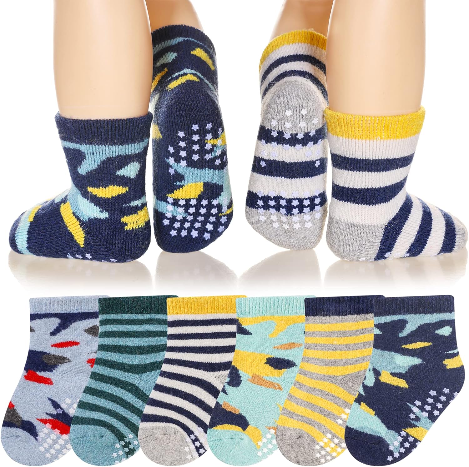 Eyean Baby Wool Grip Sock Soft Winter Warm Thick Non Slip Toddler Boy Girls Crew Socks For Children 6 Pairs