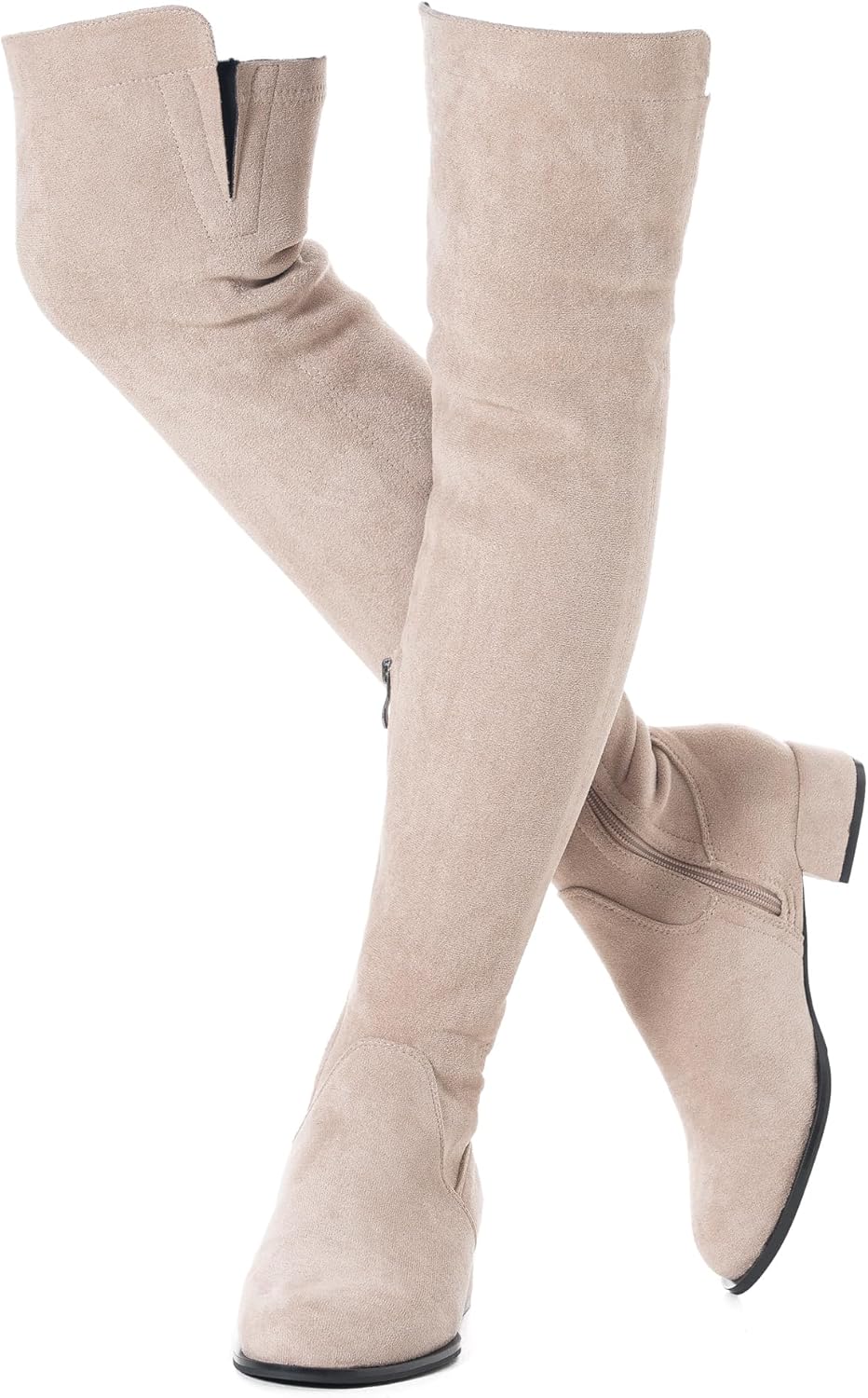 N.N.G Women Over the Knee Boots Thigh High Suede Black Block Low 2 Inch Heel Chunky Above Knee Winter Pointed toe