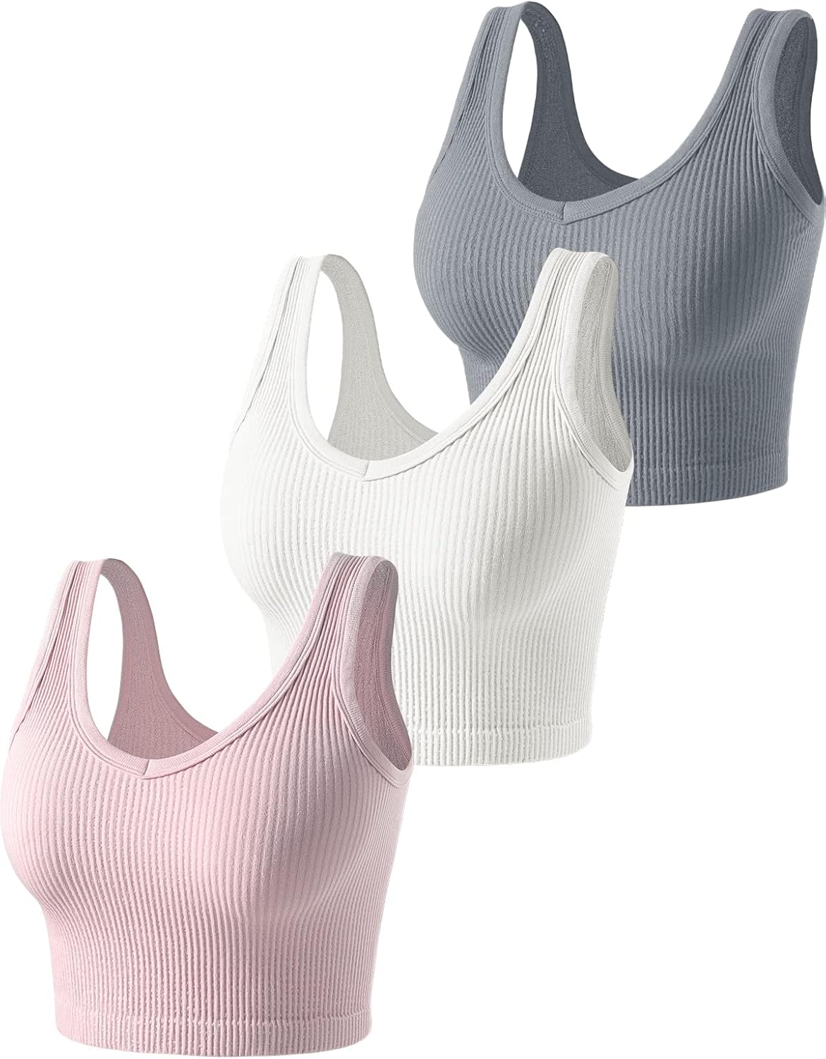 3 Pieces Womens Tank Tops Cute Sexy Going Out Ribbed Summer Tops Black White Crop Tops for Women