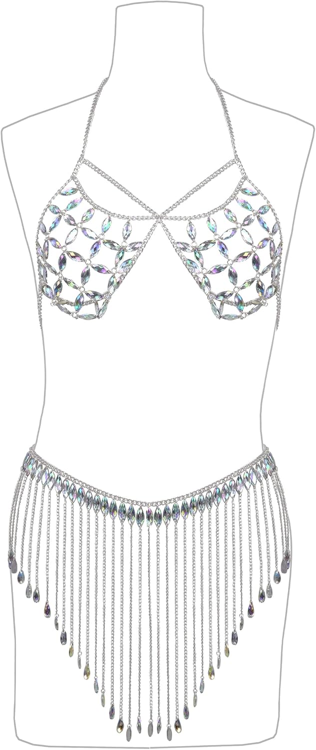 Connie Cloris Womens Sexy Body Chains Suit Two Piece Bikini Beach Body Jewelry