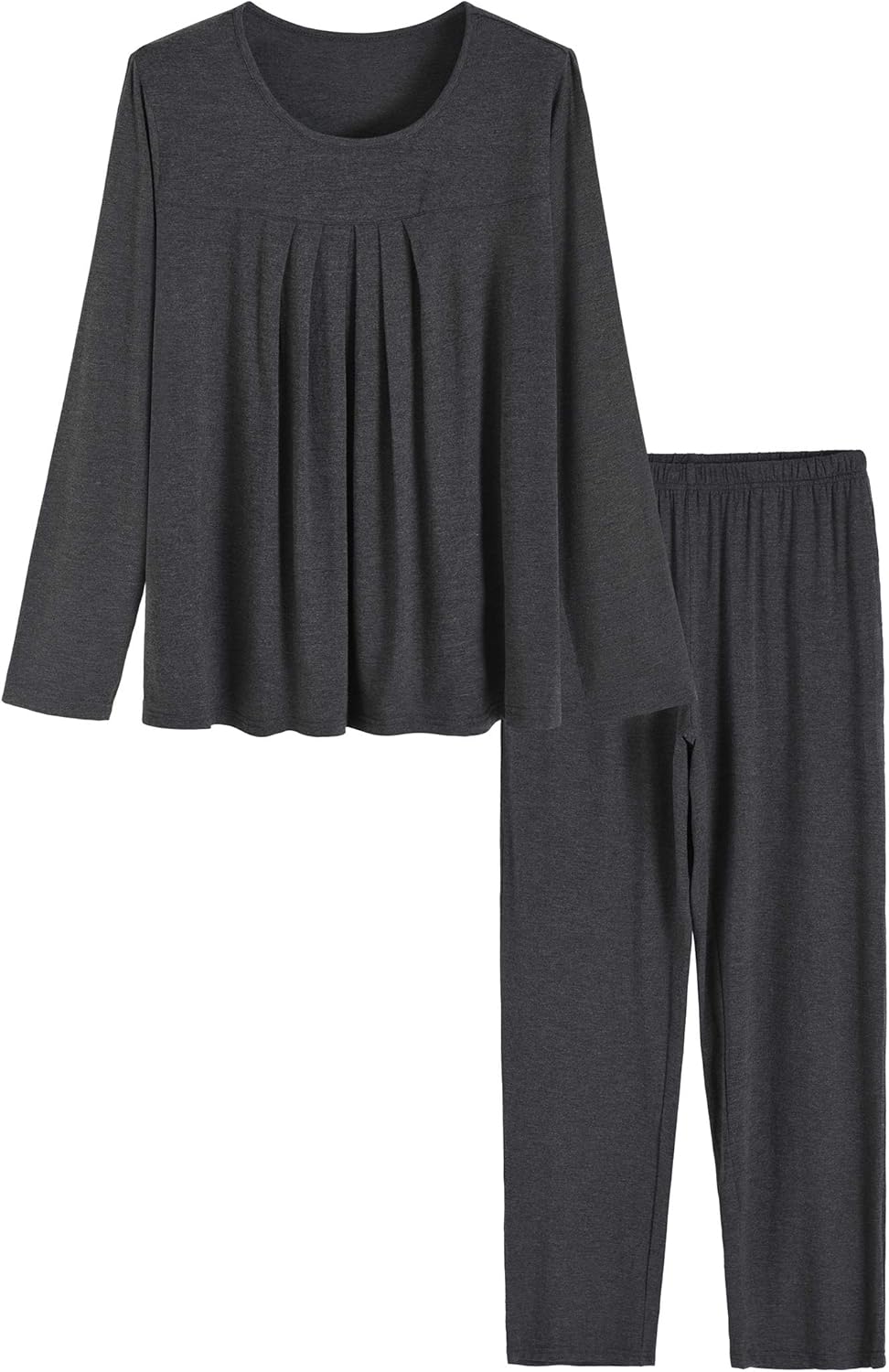 Latuza Women's Long Sleeves Pleated Front Tops Pajamas Pants with Pockets