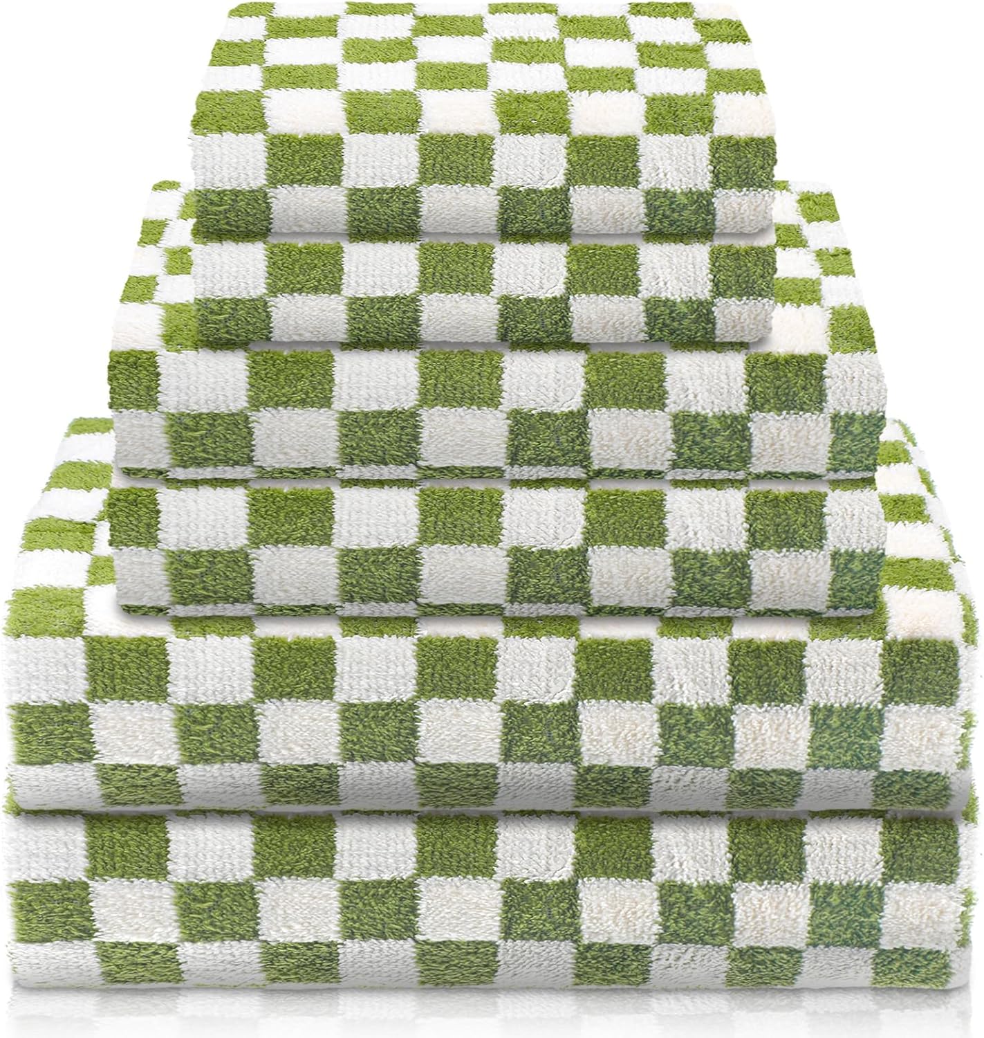 - Green and White Checkered Patterns: the green and white bathroom towels sets are designed with green and white checkered patterns, classic and simple; Soft fluffy towels allow you to enjoy the fun of cleaning, can be applied as face towel, hand towel, sweatband, kitchen cloth and more