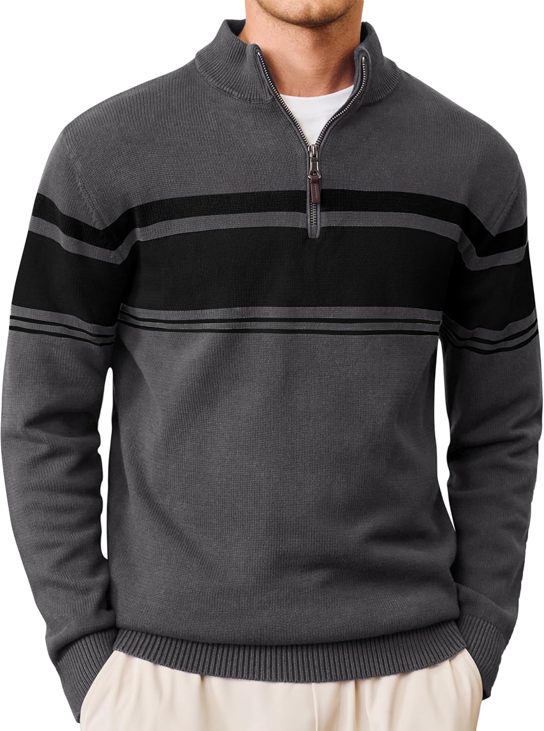 CRYSULLY Mens Sweater 1/4 Zip Cotton Polo Pullover Sweaters Casual Fall Winter Spring Striped Sweatshirts