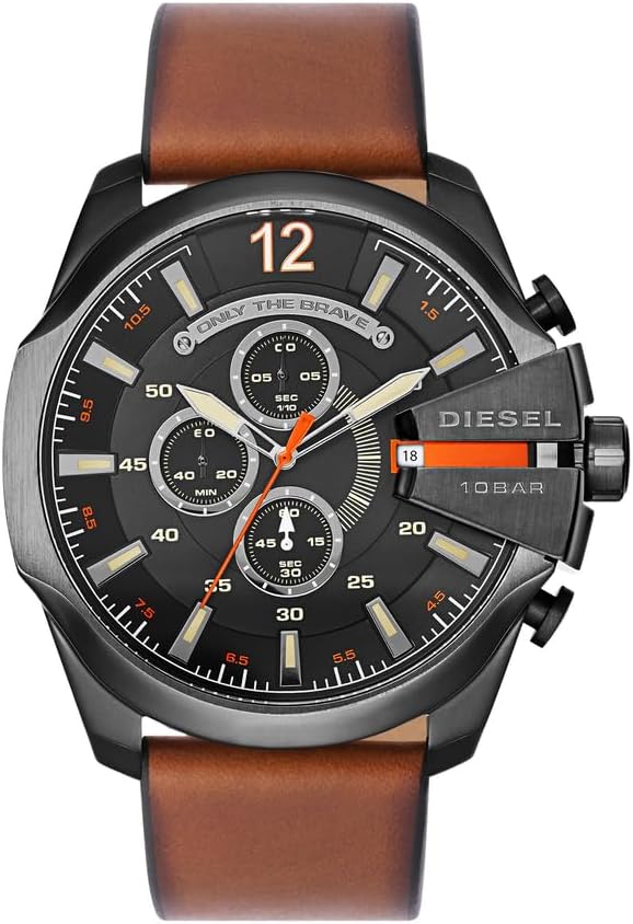Diesel Men's Mega Chief Stainless Steel Bracelet, Silicone or Leather Band Watch with Analog or Digital Movement