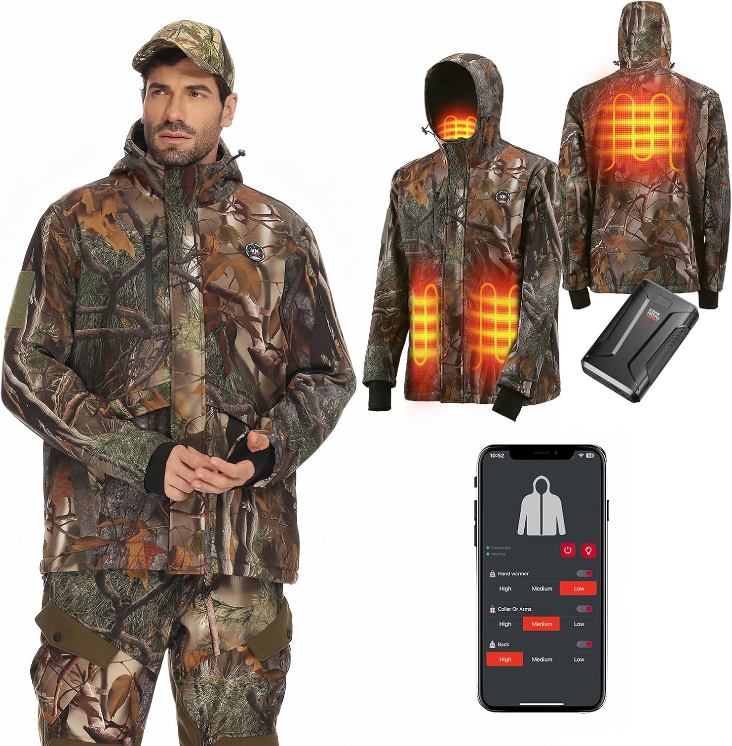 KEMIMOTO Hunting Heated Jacket with 20000mAh 6-15H Rechargeable Battery Pack Max Heating Temperature 149℉ Camo Heated Jacket