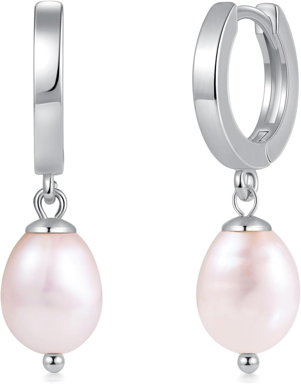 Fiusem Pearl Drop Earrings for Women, 14K Gold Plated Small Huggie Hoops with Pearl Dangle Earring for Women