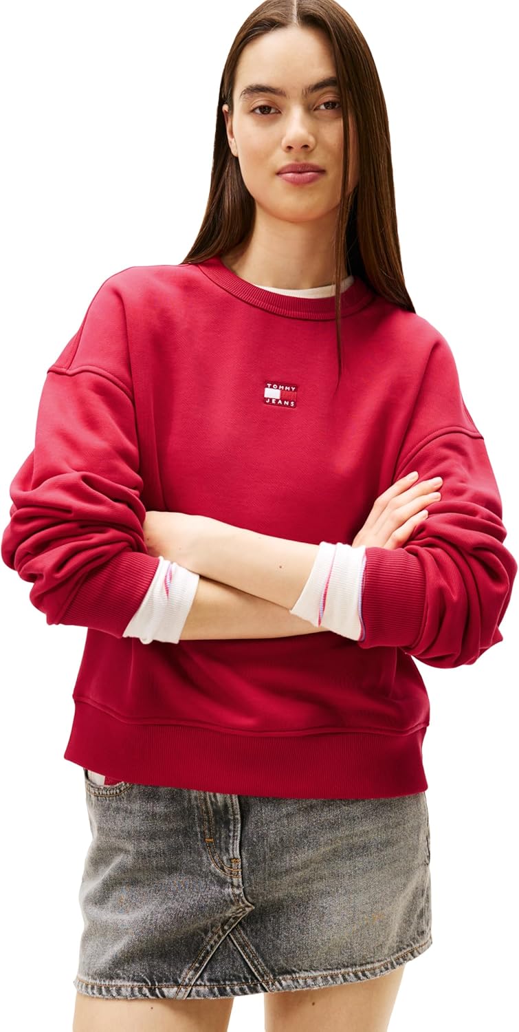 Tommy Jeans Women's Medium Weight Pullover Crewneck with Center Embroidered Flag Logo