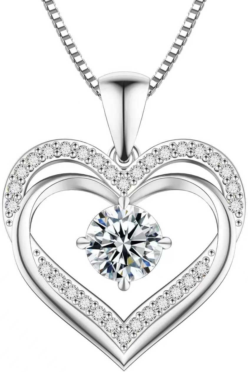 Moissanite Necklace for Women, 1–3 Carat Double Heart Pendant in 925 Sterling Silver, Romantic Love Necklace Gift for Wife or Mom, Anniversary Birthday Mother’s Day Jewelry