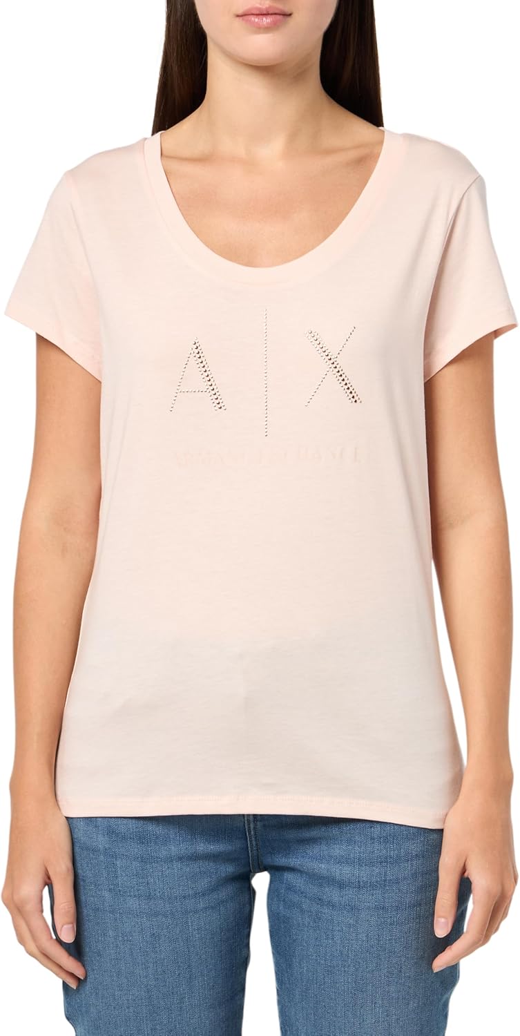 Armani Exchange Women's Rhinestone Scoop Neck Logo Tee, Vegas, Large