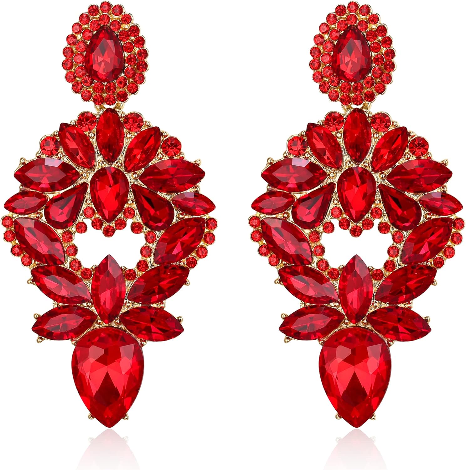 BriLove Women's Stunning Crystal Rhinestone Marquise Teardrop Chandelier Drop Dangle Earrings for Wedding Party Prom