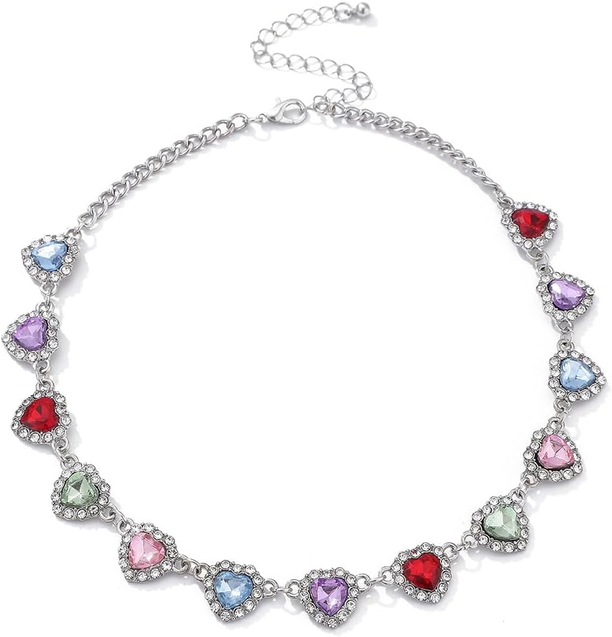 Colorful Crystal Choker Necklace for Women Love Heart Rhinestones Chain Necklaces Dainty Sparkly Pendant Charm Trendy Jewelry for Her Mom Wife Birthday Gifts