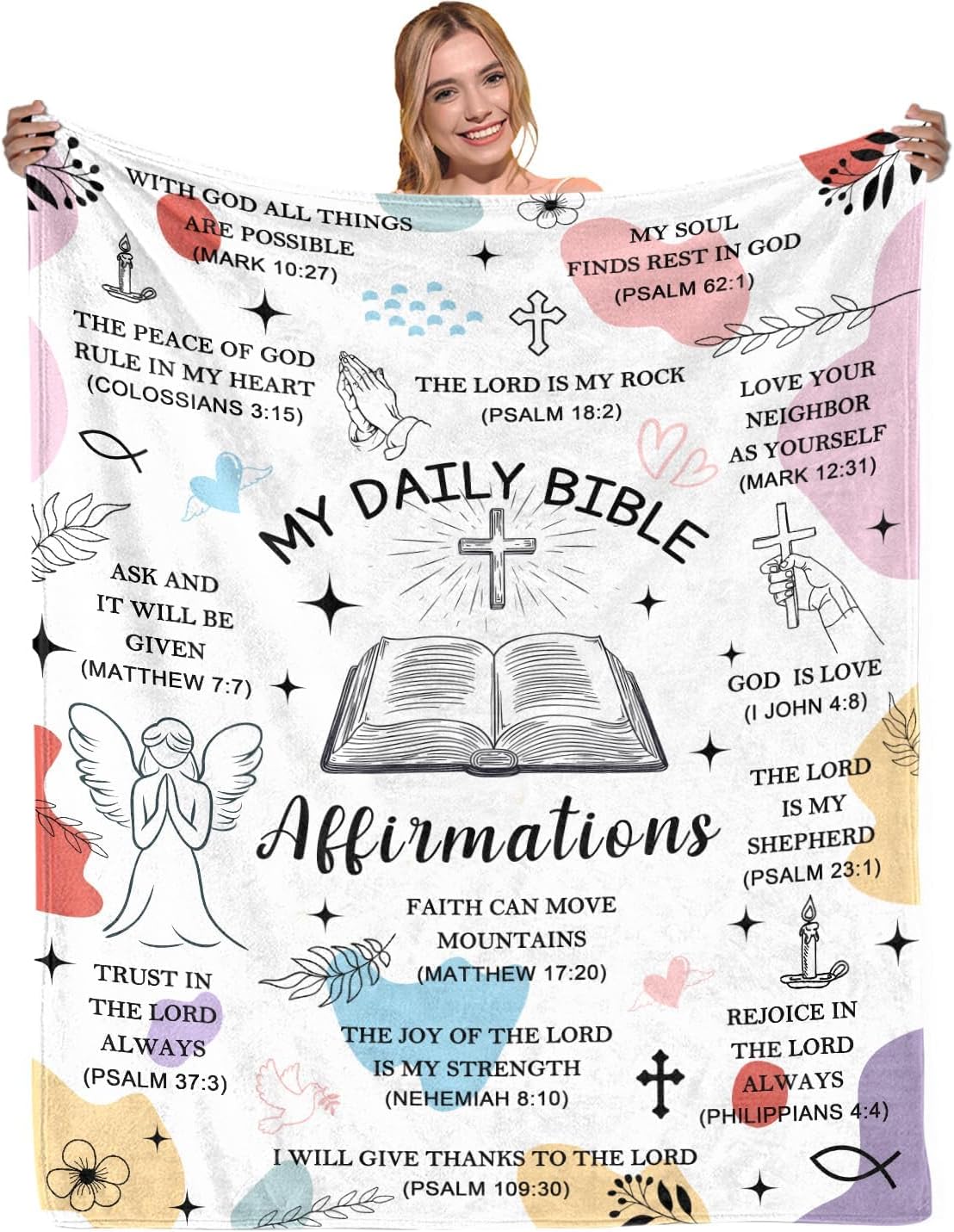 - 【Christian Blankets for Women】Featuring a reassuring message saying "My Daily Bible Affirmation" this Christian blanket is a symbol of faith and inspiration for women of all ages