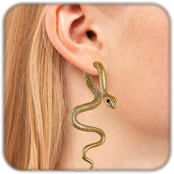 Snake Earrings for Women Vintage Goth Halloween Earrings Punk Snake Stud Dangle Drop Earring for Festival Party Jewelry Gifts (Gold)