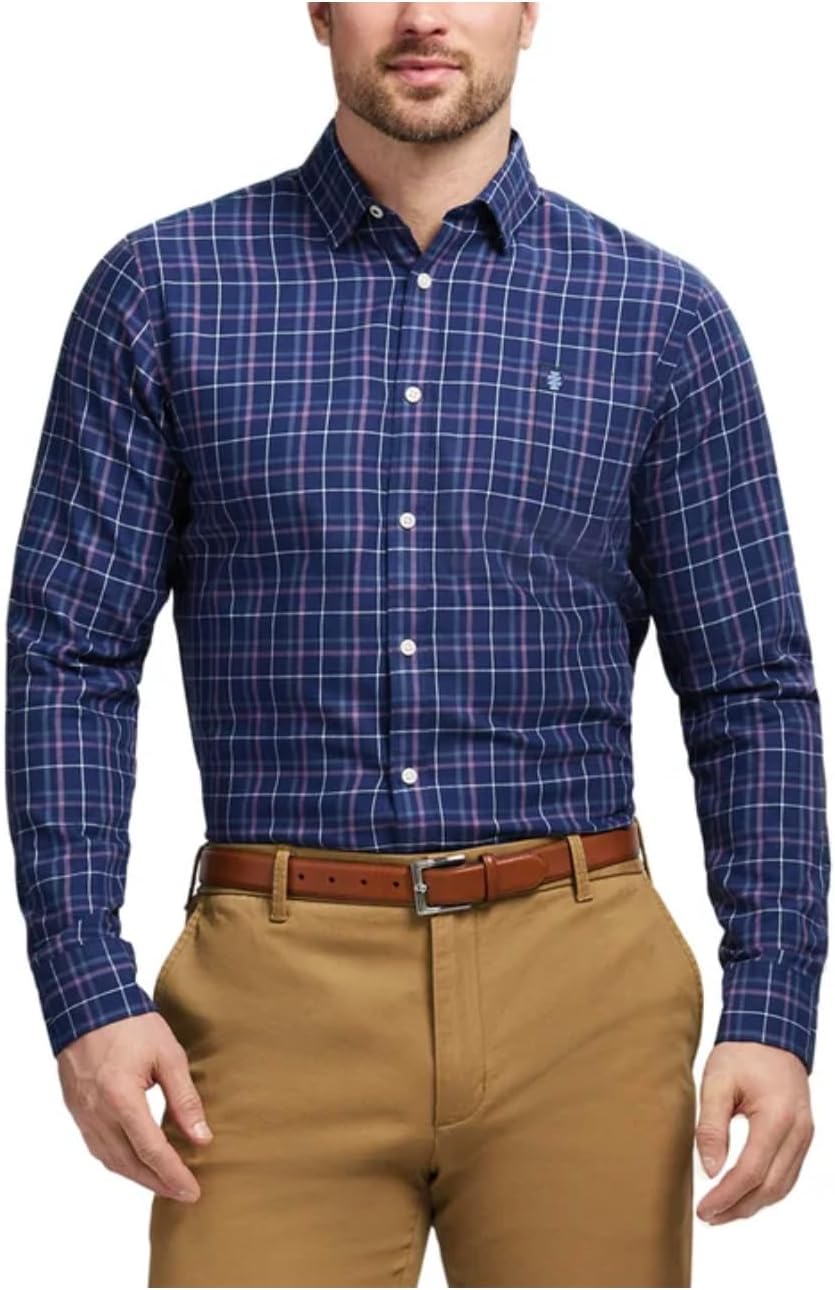 IZOD Men's Modern Fit Luxe Touch Twill Long Sleeve Button Down Shirt (US, Alpha, X-Large, Regular, Regular, Dark Blue)