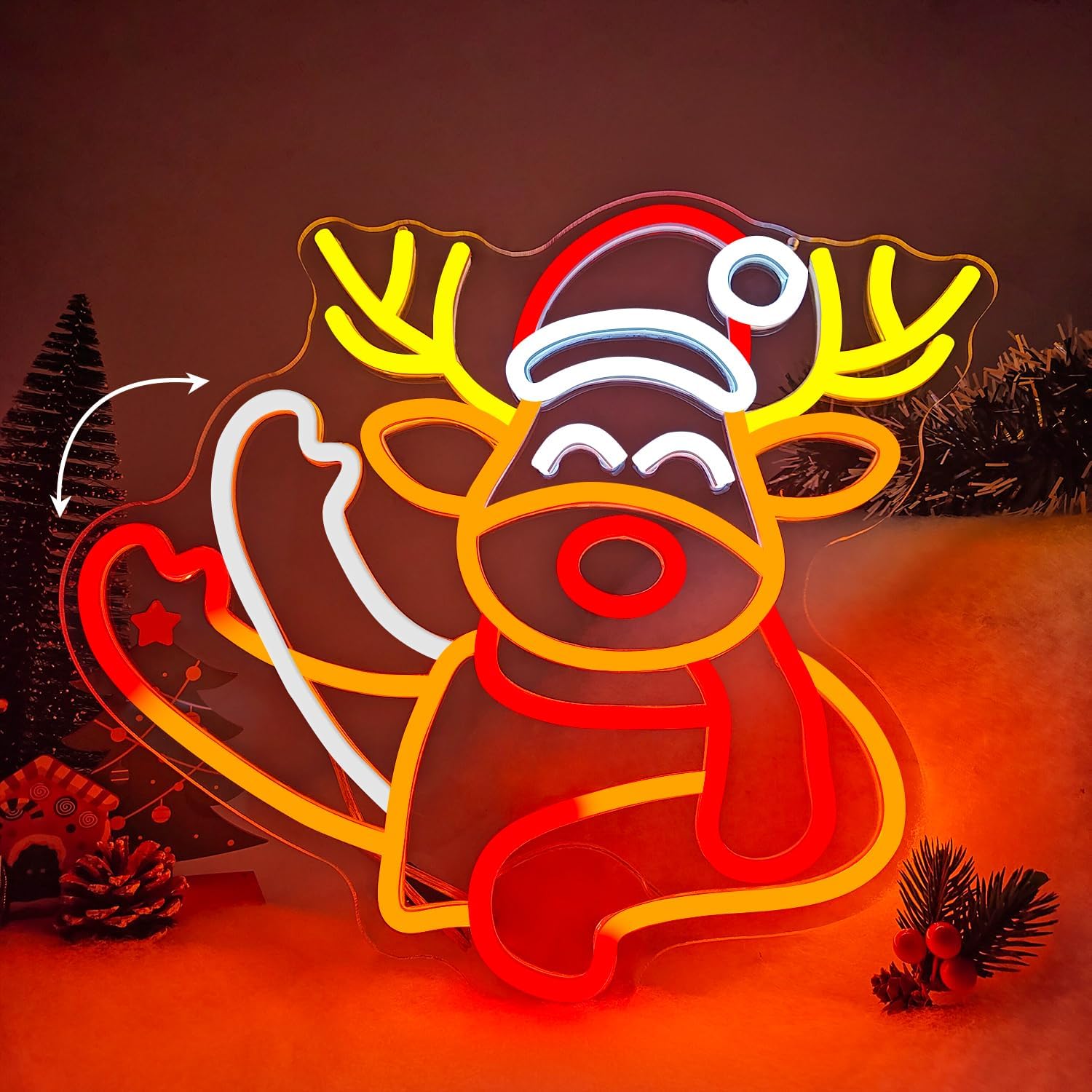 - ANIMATED ELK NEON SIGN:This Christmas neon sign will brighten up your home and add a touch of Christmas cheer to your wall decor.Reindeer Led sign looks like Christmas elk are waving. Deer neon sign's unique design creates a delightfully romantic,fairytale-like effect, allowing you to enjoy a wonderful Christmas