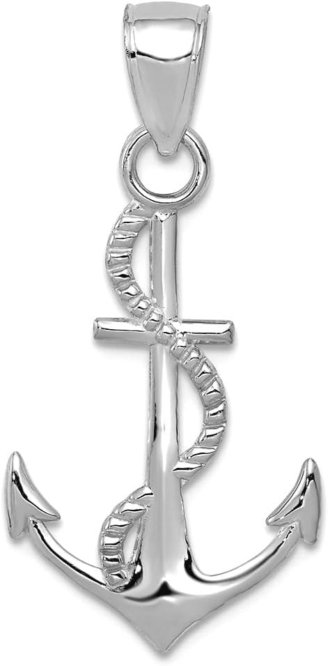 JewelryWeb 14k White Gold Gold Polished Nautical Ship Mariner Anchor With Rope Pendant Necklace 25.9mm long Pendant for Women