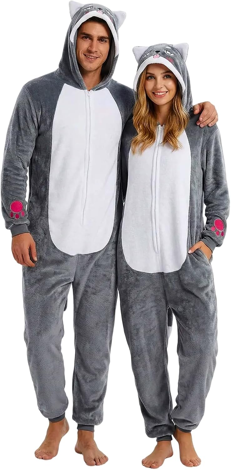 Animal Rabbit Husky Onesie Adults Soft Fleece Hooded Pajamas Costume with 3D Ears Tail for Halloween Cosplay
