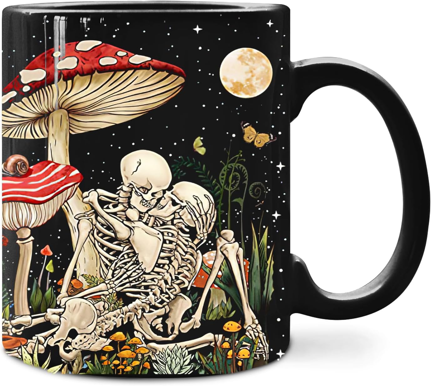 IWXYI Mushroom Coffee Mug Ceramic - Couple Mushroom Coffee Mugs Gifts, Mushroom Tea Mugs, 11oz Gothic Skull Mushroom Coffee Mug