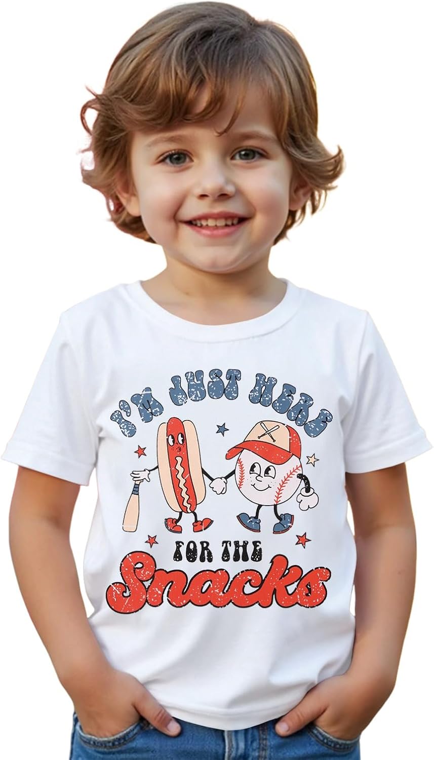 IZYJOY Baseball Shirt Toddler Boy I'm Just Here for The Snacks T-Shirt Baseball Fans Tee Game Day Short Sleeve Summer Tops