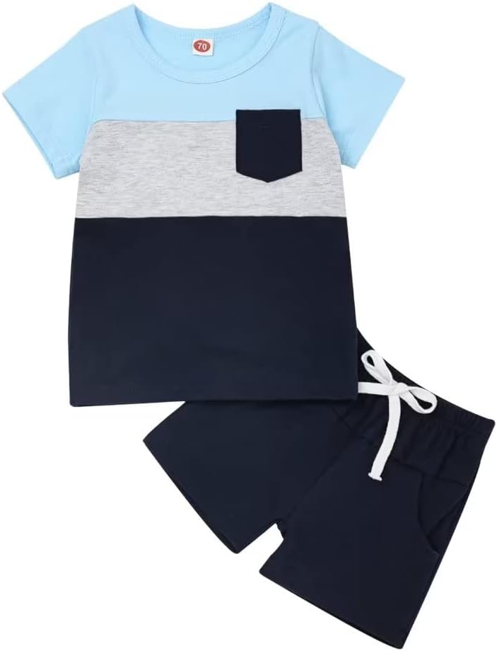 Toddler Baby Boy Clothes Boys Summer Outfits Short Sleeve Patchwork T-Shirt & Solid Shorts Set 12 Months-5T