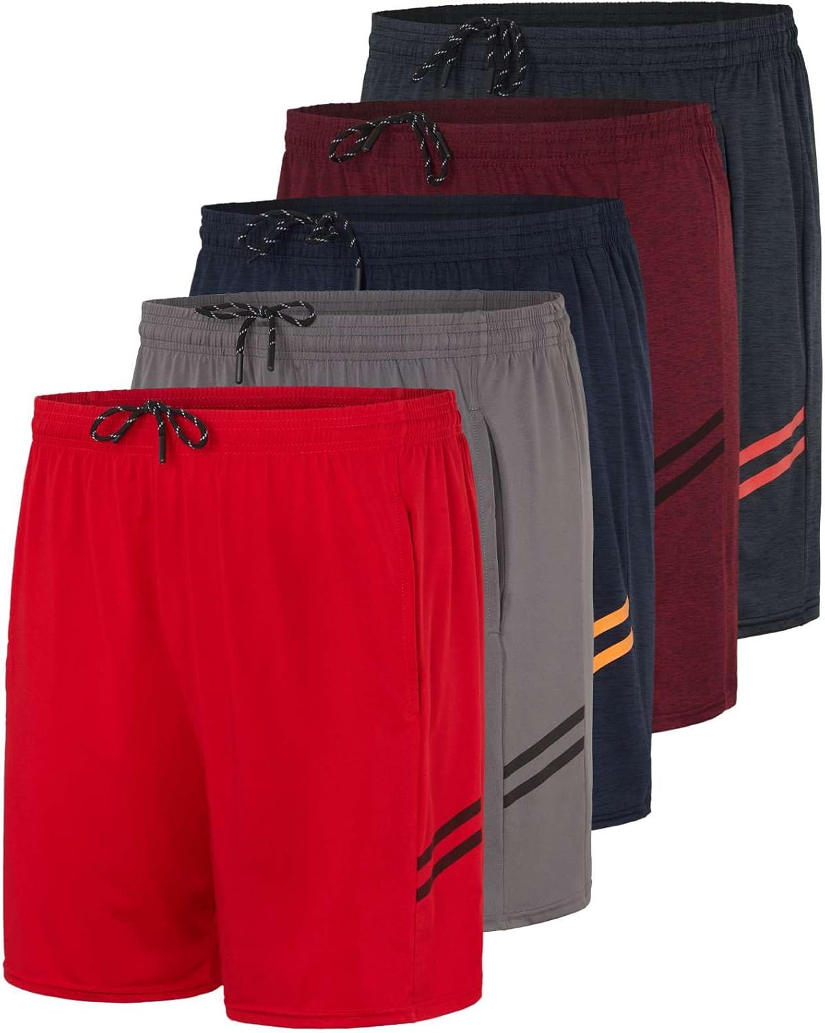 Real Essentials 5 Pack: Men's 5" Inseam Dry-Fit Running Workout Shorts - Pockets & Drawstring (Available in Big & Tall)