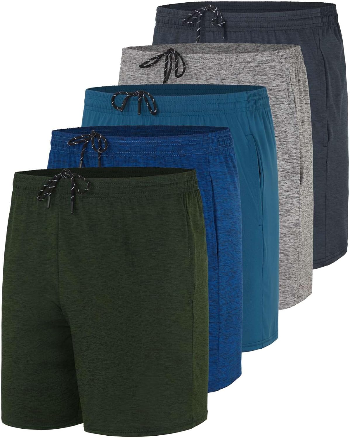 Real Essentials 5 Pack: Men's 5" Inseam Dry-Fit Running Workout Shorts - Pockets & Drawstring (Available in Big & Tall)