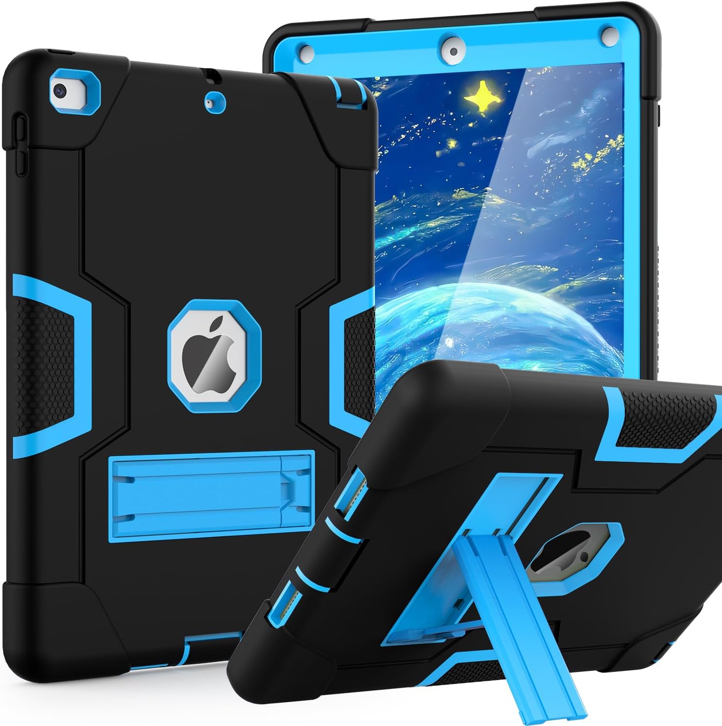 OKP Case for iPad 6th Generation/iPad 5th Generation/iPad 9.7 inch/iPad Air 2, Shockproof Case for iPad 9.7 inch 2018/2017 with Kickstand, Black+Blue | Shockproof Case, with Kickstand, Black+Blue