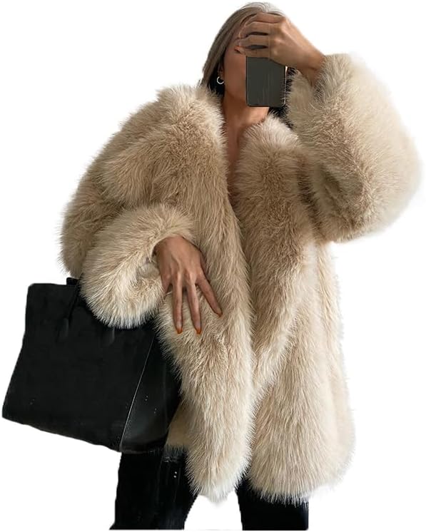 Shaggy Overcoat Outerwear Beige Faux Fur Warm Coat Women's Fashion Puffy Fur Jacket Sweater