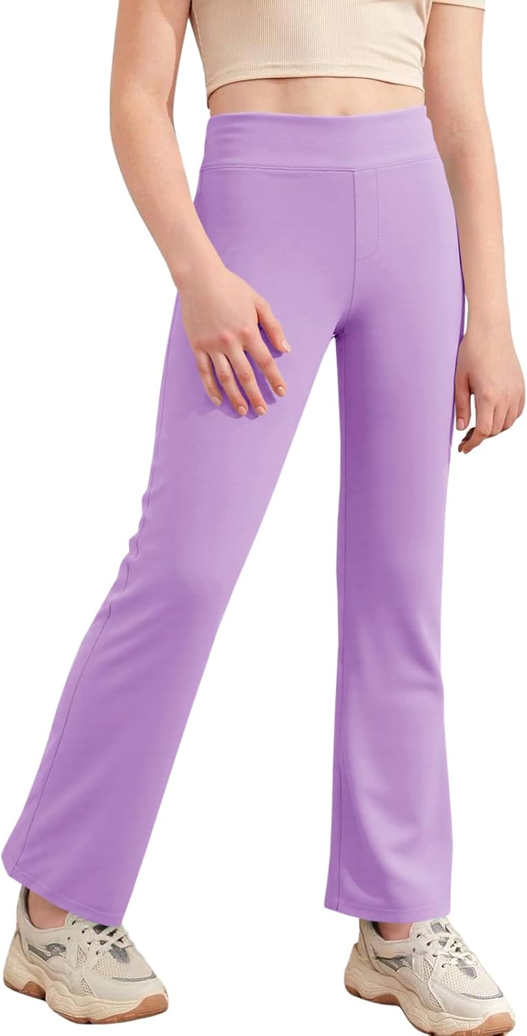 Haloumoning Girls Flare Leggings Kids Casual High Waisted Stretchy Wide Leg Pants Bell Bottoms 5-14 Years