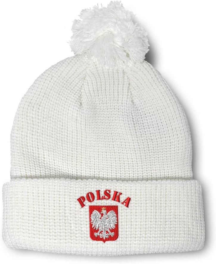 Custom Pom Pom Beanies for Women Poland Polska Seal Flag Krakow Warsaw Skull Cap Acrylic One Size