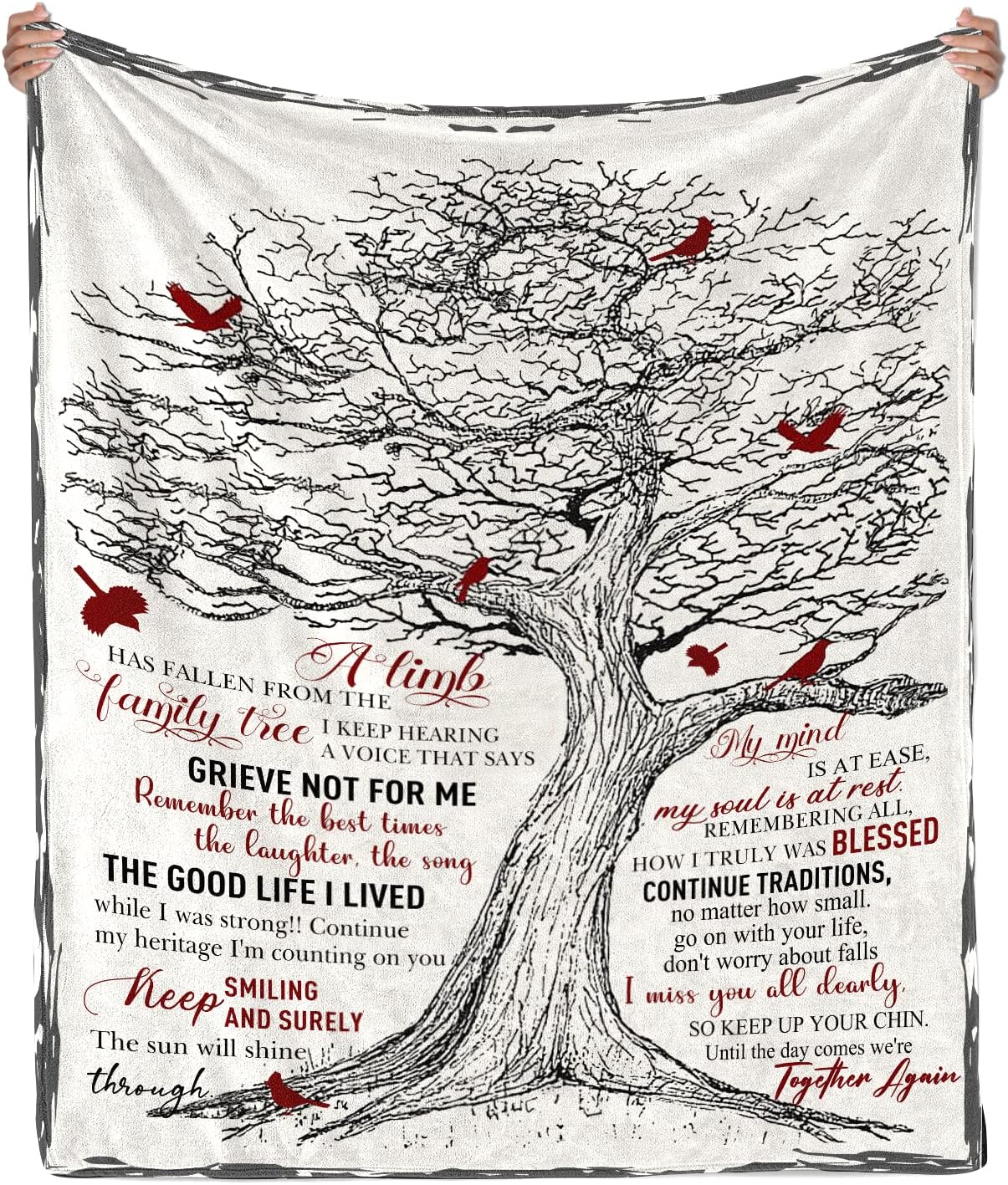 - Condolences Gift Ideas: This blanket is a gift to remember son, daughter, mom, dad, grandpa, grandma, brother, sister, pet, etc. You can give it as a gift to someone who has lost a loved one to bring him/her some comfort, warmth and encouragement