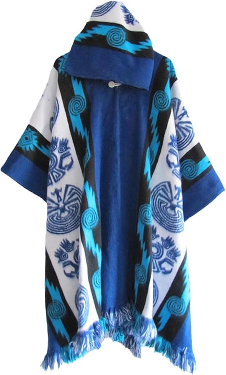 Mexican Knit Poncho Sarape Western Vintage Hippie Shawl With Hood Blanket Sleeveless Cloak Outfit