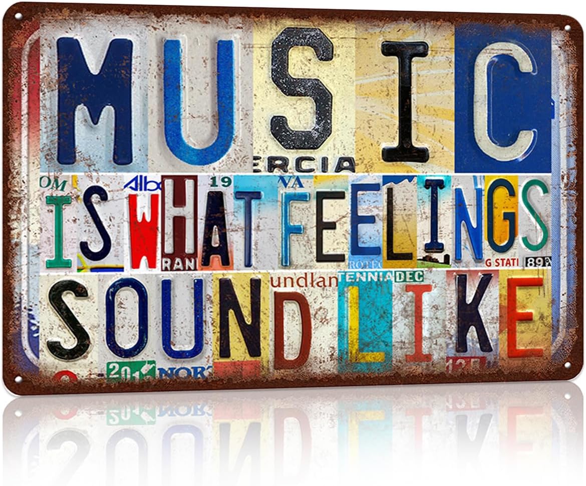 Vintage Music Room Wall Decor Inspirational Quotes Metal Sign Tin Signs Poster - Music Is What Feelings Sound Like