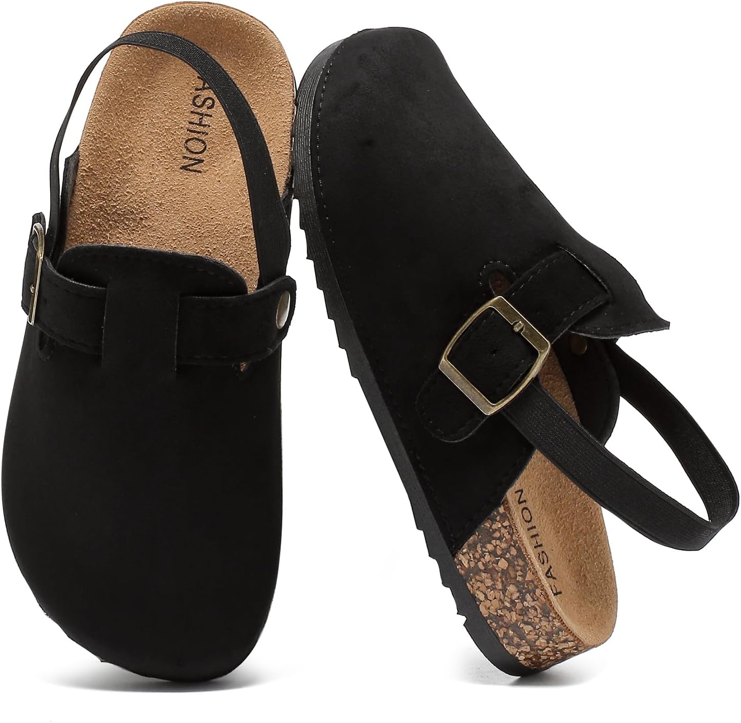 XTJSCBDSH Kids Suede Clogs for Boys and Girls Toddler Cork Footbed Sandals Mules, Potato Shoes with Adjustable Buckle, Slip-on Slippers Indoor Outdoor
