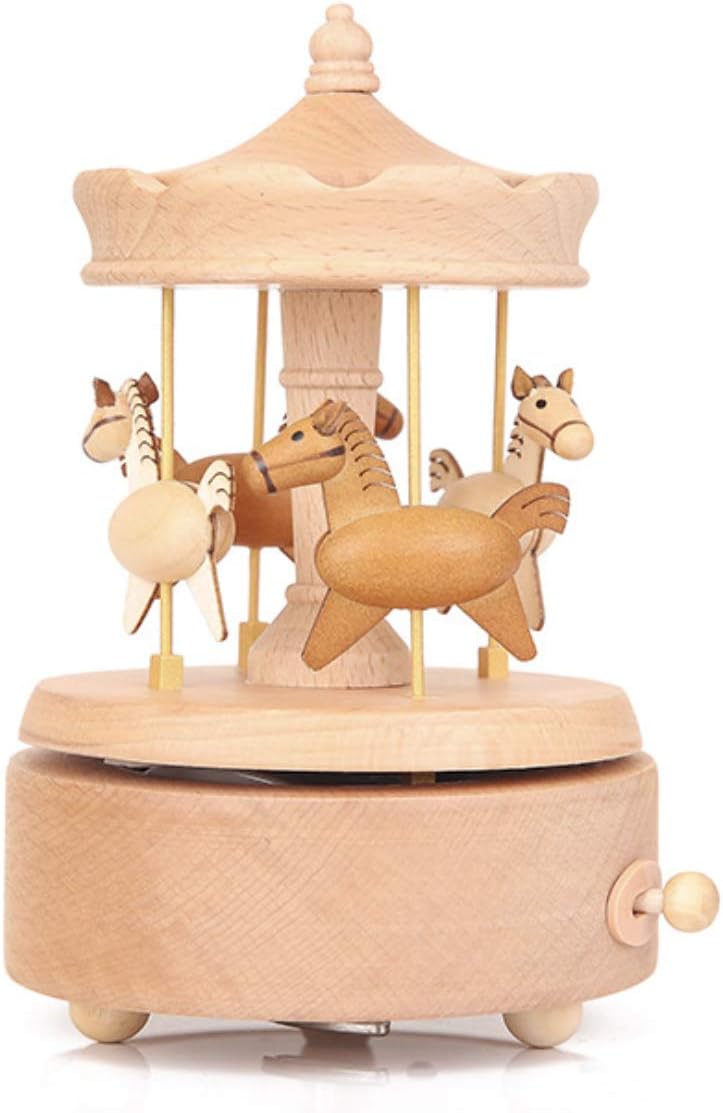 Carousel Music Box, Wooden Horse Music Box for Girl Women, Christmas Birthday Gift, No Battery Home Wood Decor