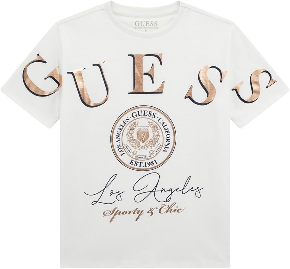 GUESS Girls' Eco Short Sleeve Midi T-Shirt, Pure White
