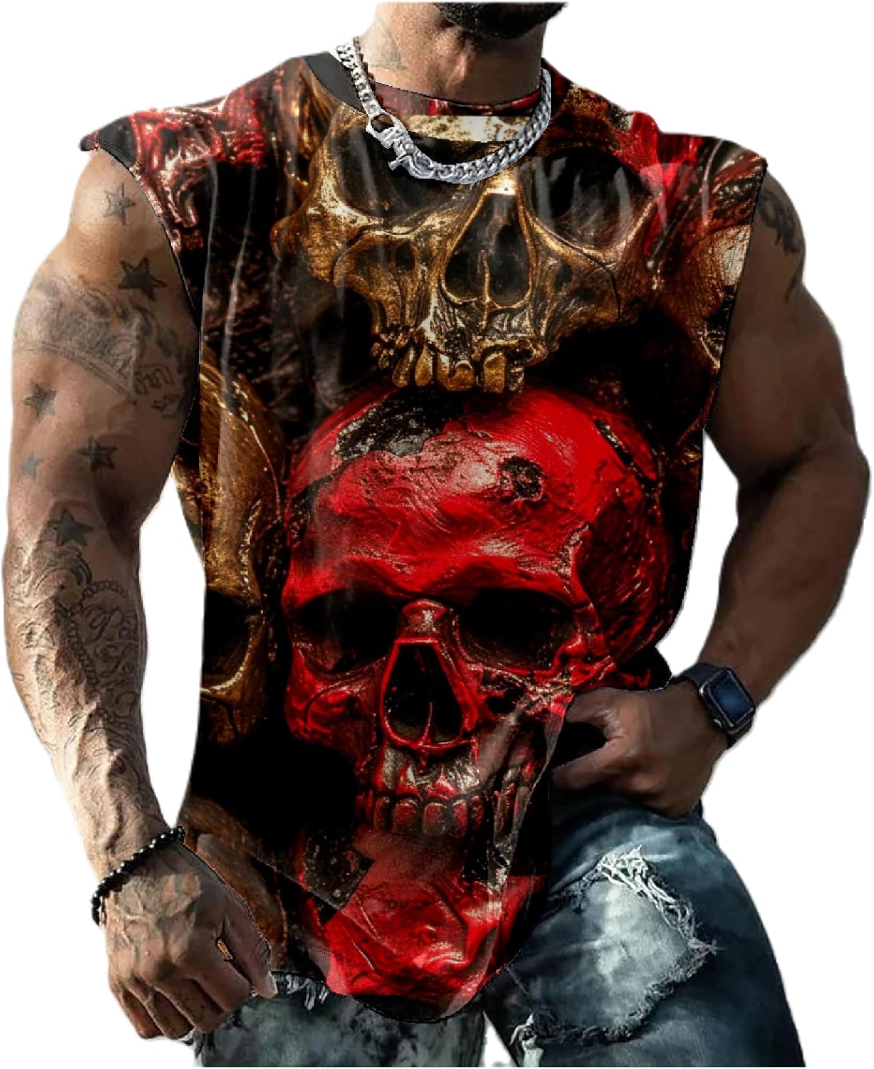 Graphic Tank Tops Men Skull Printed Sleeveless Summer Oversized Loose Gym Workout Breathable Sportswear