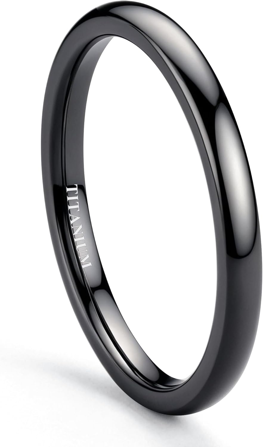 Jstyle 2mm 4mm 6mm Titanium Wedding Band Rings for Men Women Silver/Gold/Black Plated Domed High Polish Stackable Rings Engagement Statement Promise Wedding Band Ring Comfort Fit 6-13 Not Tarnished