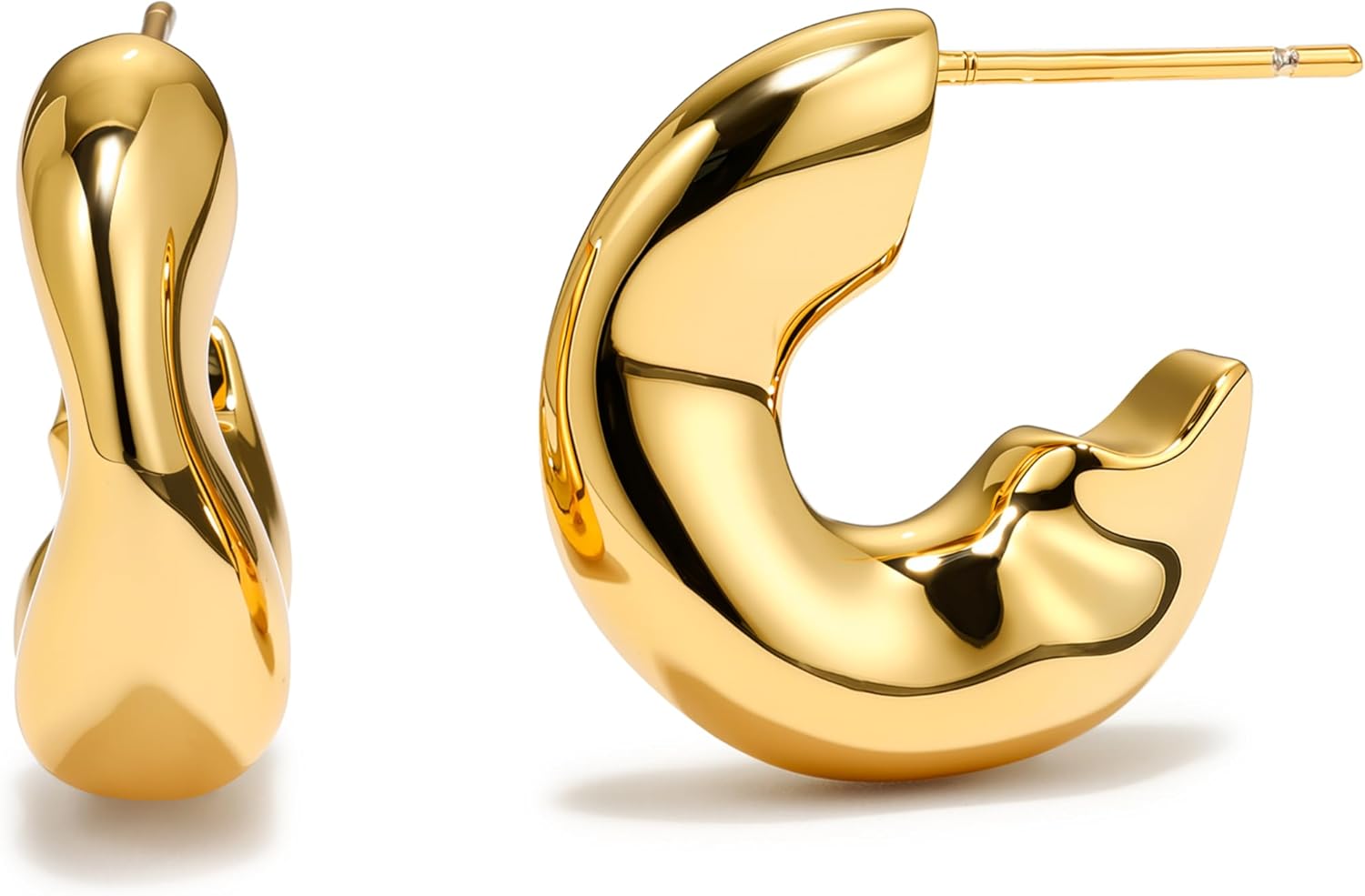 18K Gold Plated Chunky Hoop Earrings, Gold Hoop Earrings for Women Thick Open Hoops, Lightweight Hollow Hoops Earring for Women Hypoallergenic Jewelry Gifts