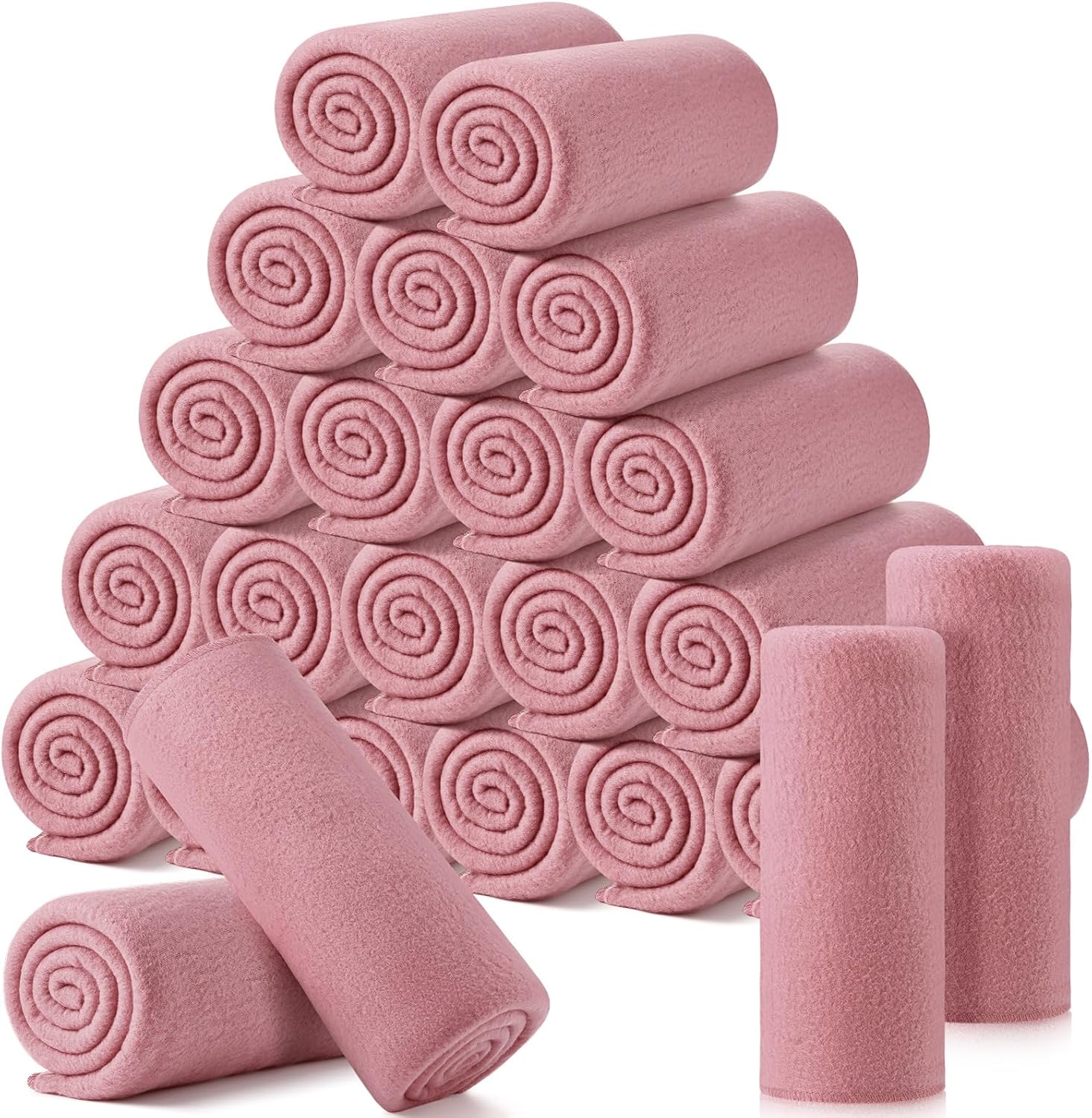 Shimeyao 24 Packs Fleece Throw Blanket Soft Warm Lightweight Fleece Blanket Cozy Throw Bulk for Home Bed Couch Sofa Office Wedding Gifts Suitable for Seasons, 50 x 60 Inches(Cherry Blossom Pink)