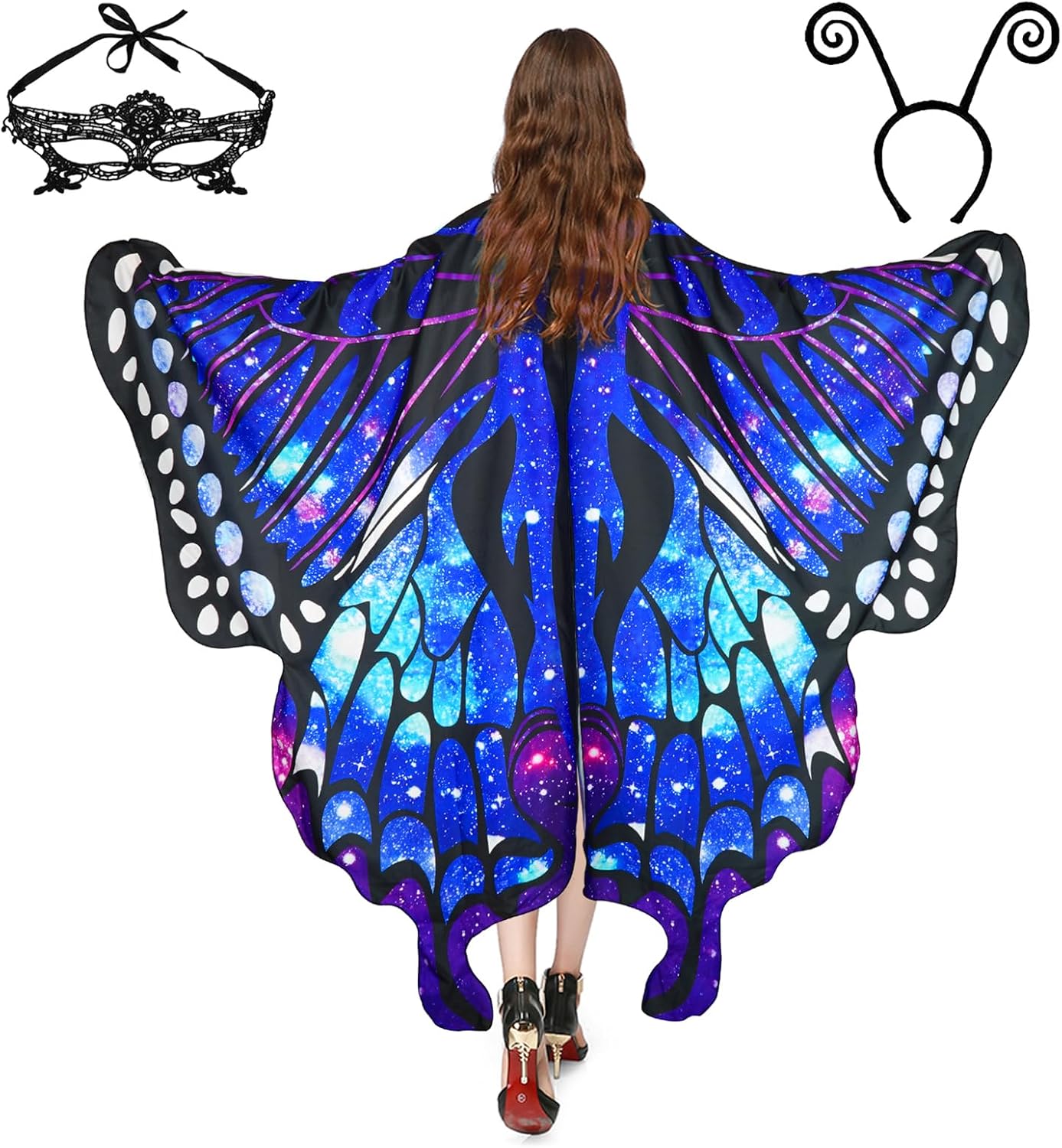 Halloween Costumes Women Adult Butterfly Costume Wings Cape with Lace Mask and butterfly Headband