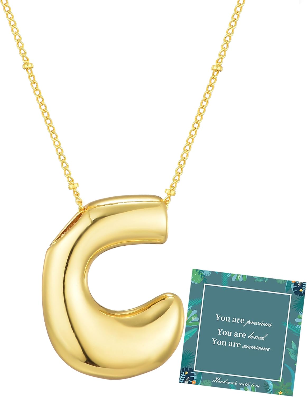 14K Gold Plated Bubble Letter Necklace 3D Initial Pendant with Beaded Chain Personalized Name Jewelry for Women