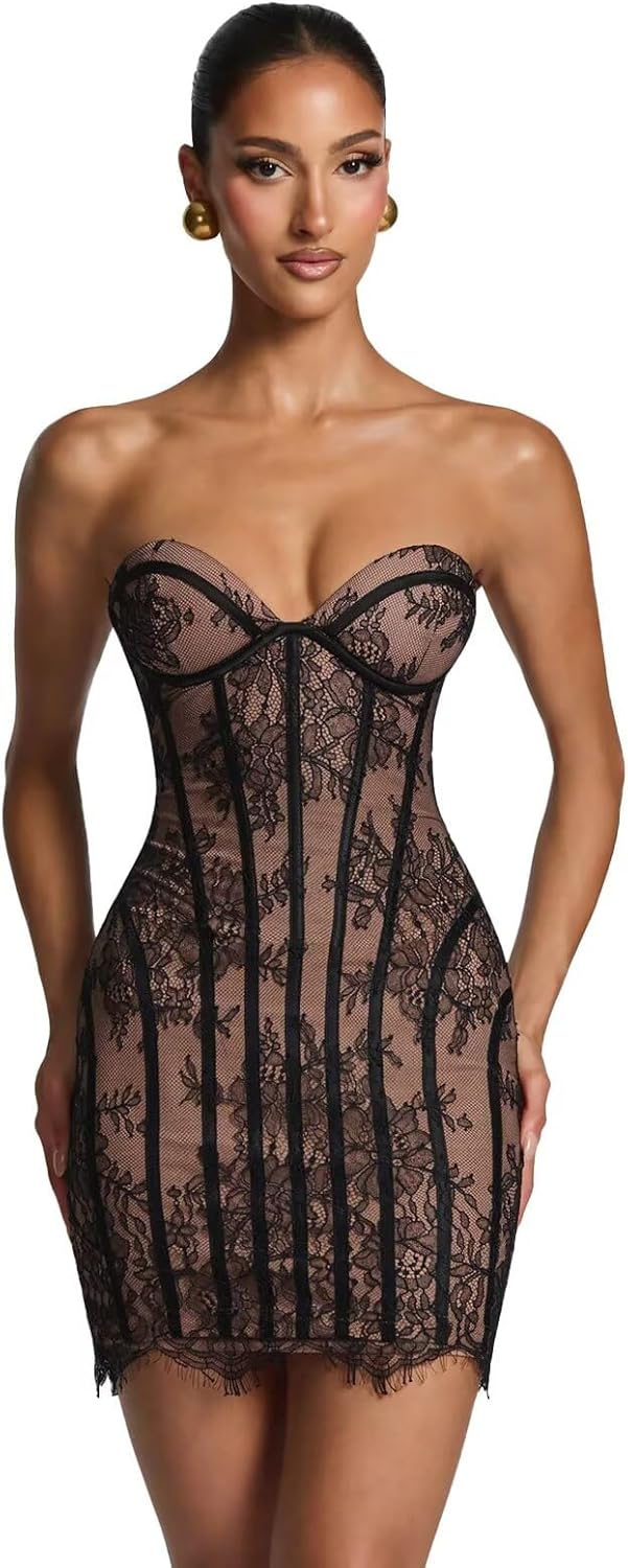 Short Floral Lace Homecoming Dresses for Women 2026 Strapless Corset Tight Mini Prom Cocktail Dress