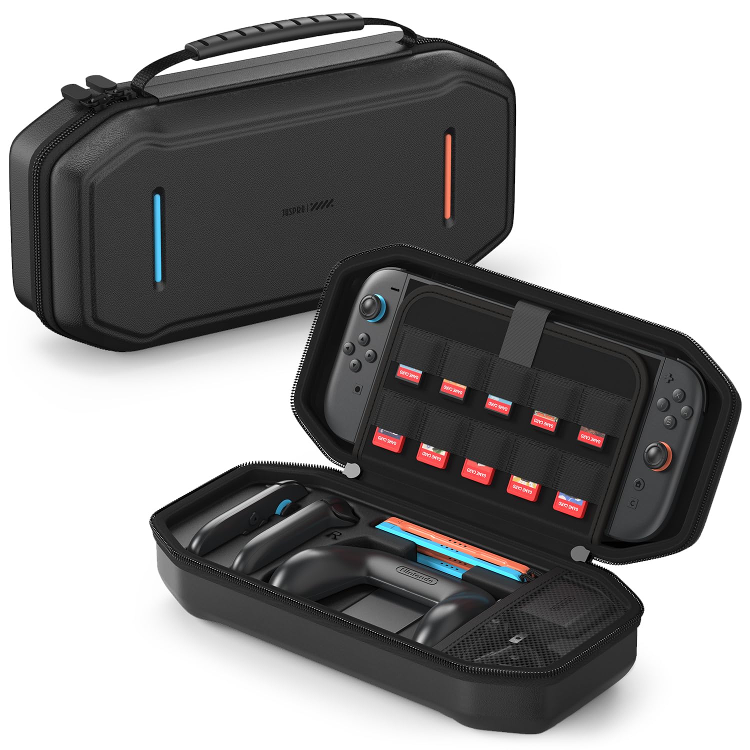 - 【Chic, Sturdy, Travel-Ready】 JUSPRO Switch 2 travel case mixes modern style with durability, offering long-lasting protection for your console. Made of high-grade materials, it resists daily wear and tear while keeping your device and accessories safe. Perfect for gamers valuing both functionality and aesthetics.