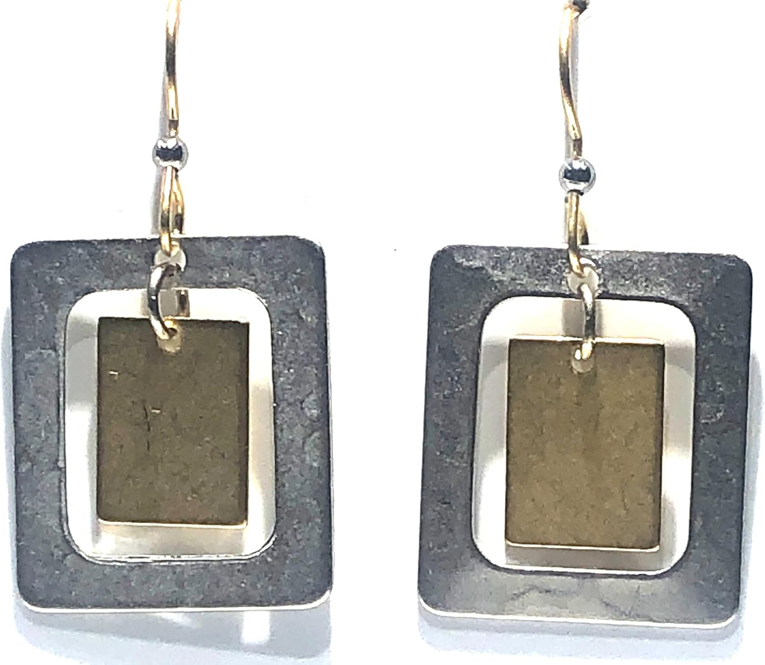 Silver Forest Hammered Rectangle Duo Pierced Earrings NE-2401