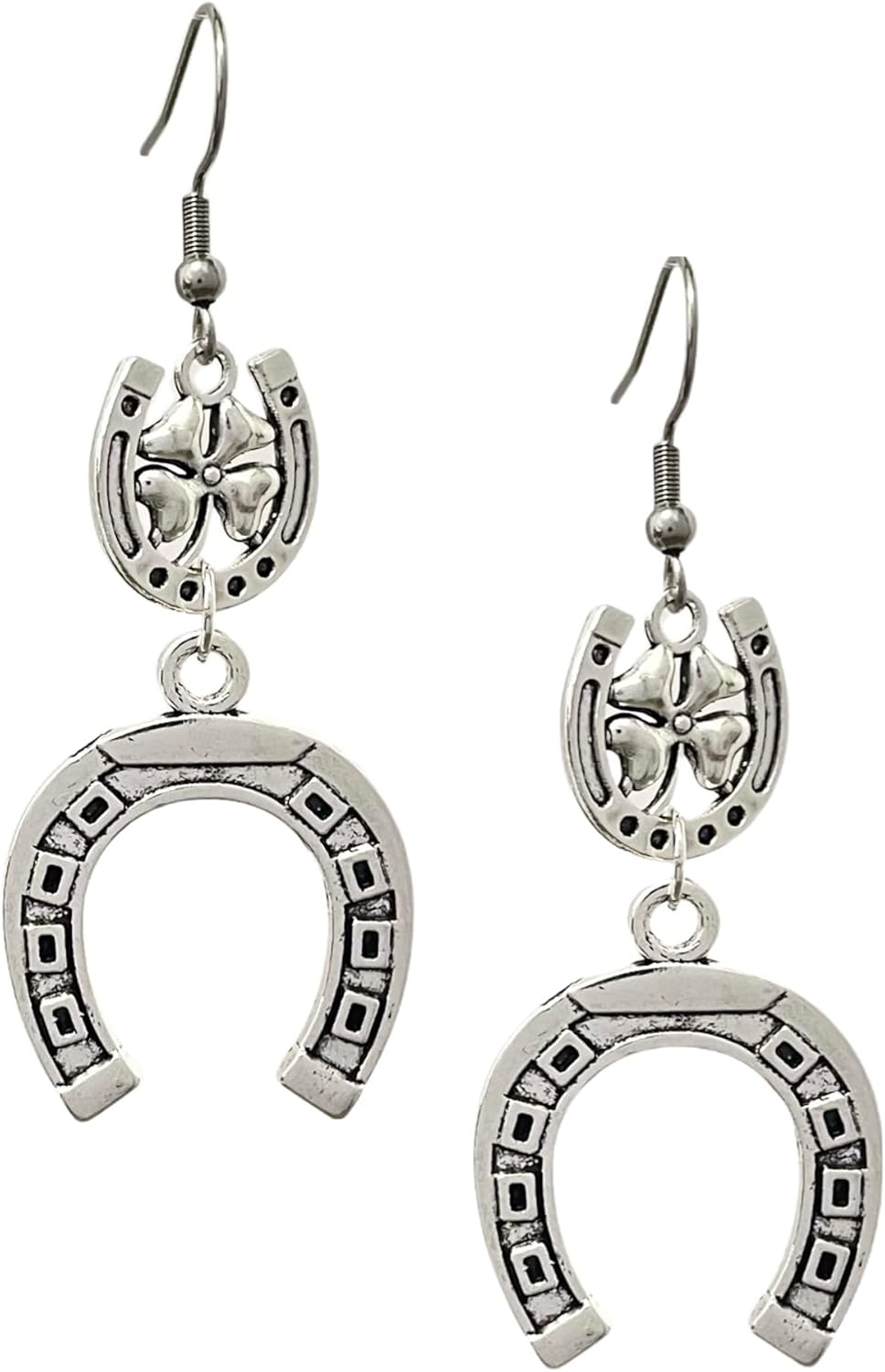 Silver Dangle Earrings on 925 Sterling Silver Wire, Western Cowgirl Style, Fashion Trendy Handmade Earrings for Women Girls, Hypoallergenic (Horseshoe A)