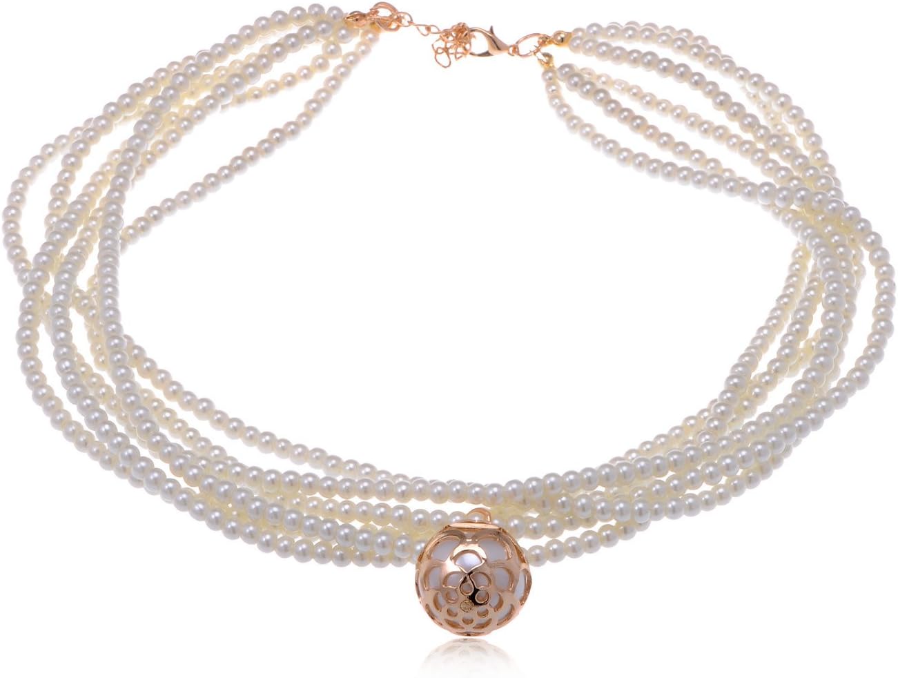 Alilang Six Strand Faux Pearl Golden Tone Necklace With Golden And Pearly Style Accent