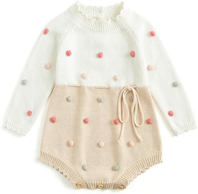 Simplee kids Baby Girls Rompers Long Sleeve Pompoms Infant Toddler Jumpsuit for Spring Fall Winter