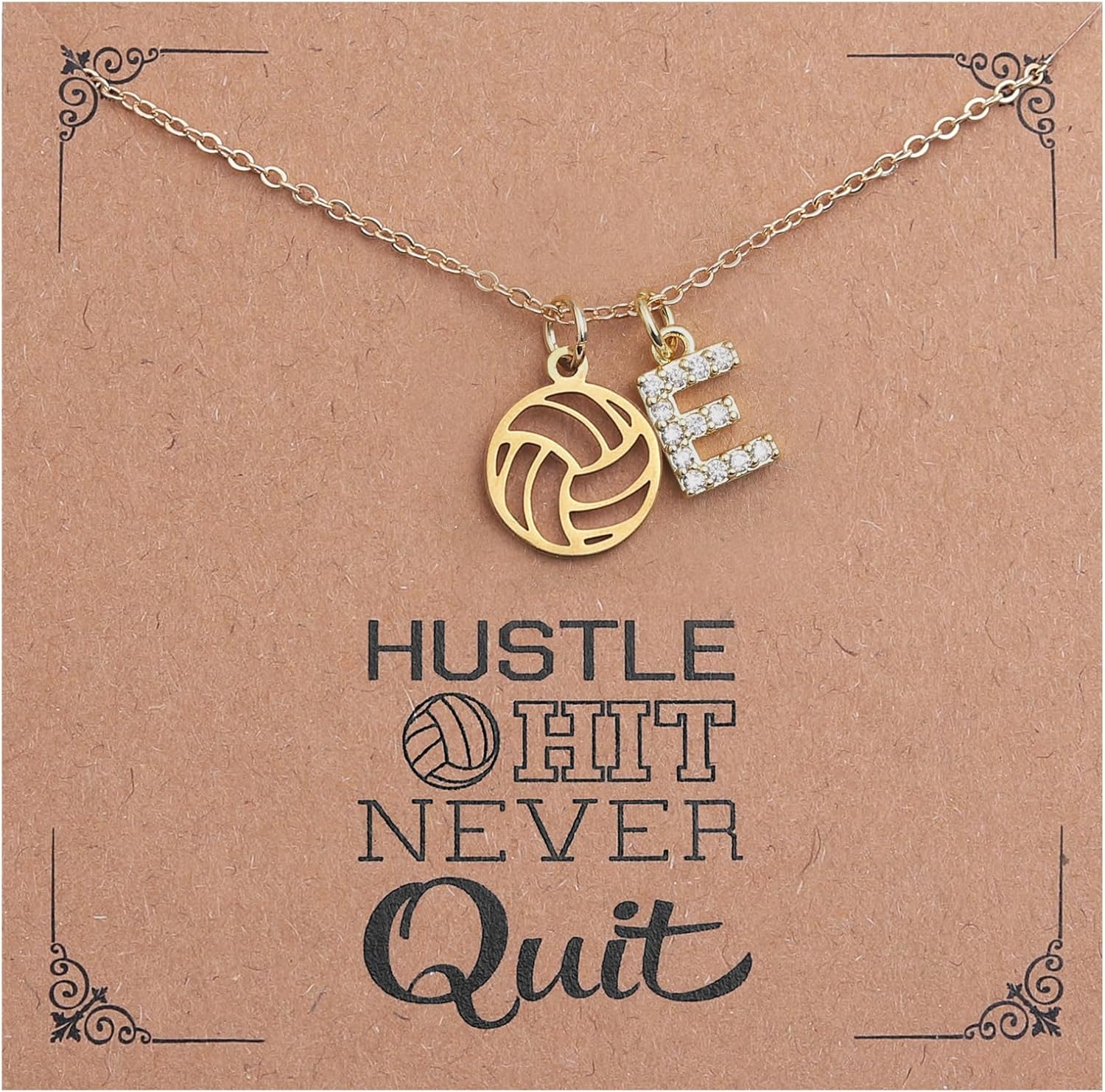 Volleyball Necklace for Women Teens Dainty A-Z Custom Name Sports Pendant Necklace Personalized Volleyball Gifts for Team Players Coaches Fans