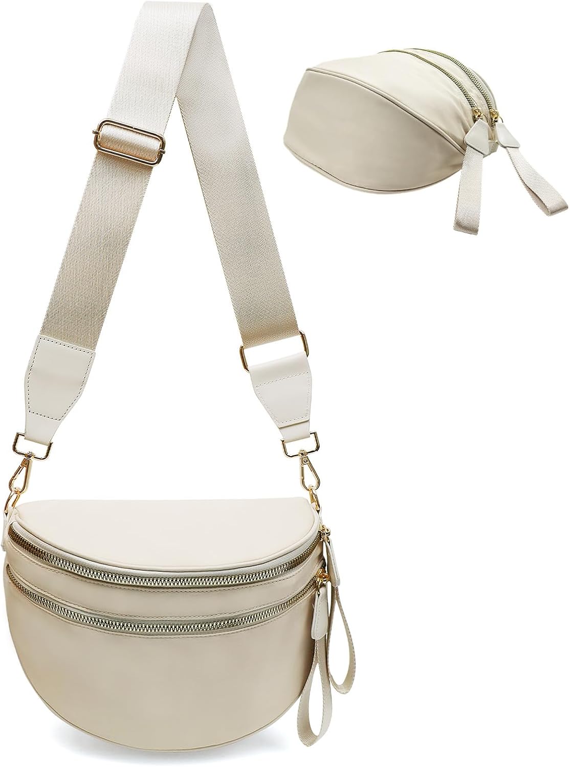 Bum Bags for Women Nylon Crossbody, Spacious Fanny Packs Belt Bag Large Sling Bag with Adjustable Strap (Beige)